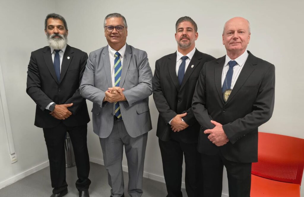 O acompanhamento do ministro Flávio Dino foi realizado pelos Agentes Nédio Luis Finkler, Bruno Drehmer Rodrigues e Maurício Machado Gonçalves, que atuaram de forma integrada na execução dos protocolos de segurança (foto). Já a escolta do ministro André Mendonça ficou a cargo dos APJs Fernando Henrique Fernandes e Rafael Freitas Martins, responsáveis pela proteção durante os compromissos relacionados ao evento.