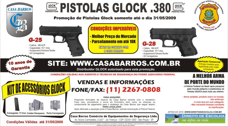 Read more18.5.2009-Agentes de Segurança podem aproveitar condições especiais de aquisição das pistolas Glock BRASÍLIA 18/5/2009 – A Casa Barros, empresa representante