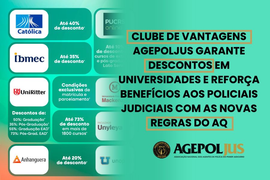 CLUBE DE VANTAGENS SPI/AGEPOLJUS GARANTE DESCONTOS EM UNIVERSIDADES E REFORÇA BENEFÍCIOS AOS POLICIAIS JUDICIAIS COM AS NOVAS REGRAS DO AQ